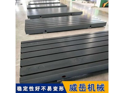 铸铁装配平台的规格一般为:500*500-3000*6000,(异性规格可按图纸订做)。铸铁装配平台工作面采用刮削即人工刮研工艺,铸铁平台按我国标准计量检定规程执行,分别为1级铸铁装配平板、2级装配平台、3级T型槽装配平台。